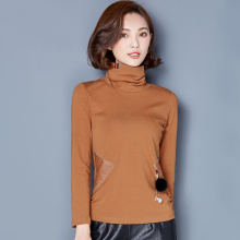 2017春秋新款上衣小衫女装韩版修身显瘦堆堆领T恤加绒打底衫女装