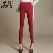 皇蔻女裤2017新款春外穿打底裤纯棉女长裤大码显瘦弹力黑色铅笔裤