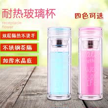 玻璃杯泡茶便携创意带盖情侣随手杯韩国可爱学生水杯双层过滤加厚
