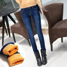 冬季加绒加厚牛仔裤女装修身显瘦保暖小脚弹力大码铅笔裤学生长裤