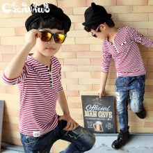 2017男童条纹长袖T恤莱卡棉中大童春秋季打底衫儿童新款纯棉上衣