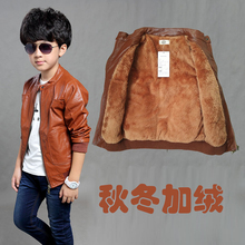 秋冬季男童加厚外套皮衣夹克童装儿童中大童男生加绒皮夹克外衣潮