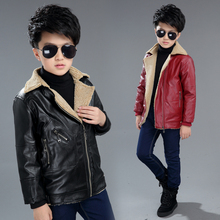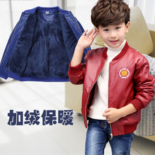 冬季男童外套加厚加绒皮衣童装儿童中大童上衣皮夹克PU皮男孩外衣