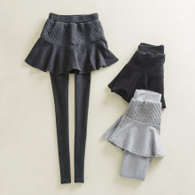 春秋季韩国东大门假两件打底裤外穿加厚格子短裤裙裤纯棉长裤子女