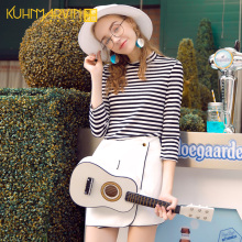 2017春季新款学生修身条纹针织衫长袖t恤半高领套头打底衫女上衣