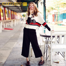 2017春装新款甜美撞色条纹长袖修身毛针织衫女打底衫秋冬上衣毛衣