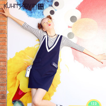 2017春秋女装新款韩版宽松吊带裙学院风中长款连衣裙学生背带裙女