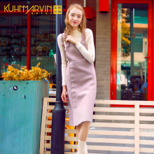 2017春装新款甜美少女学院风纯色中长款显瘦针织背带裙女连衣裙