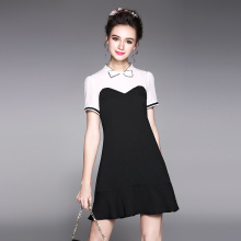大码女装遮肚子连衣裙显瘦藏肉胖mm蝴蝶结撞色拼接中长款2017新款