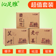 艾草泡脚药包祛湿去脚臭粉红花老姜足浴粉三件套装