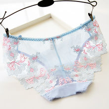 美宅背后交叉蕾丝内裤女性感刺绣透明镂空低腰网纱面料中腰三角裤