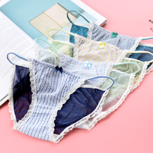 美宅性感蕾丝网纱内裤女 日系低腰面料全透明薄三角裤纯棉档透气