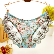 美宅性感蕾丝女士三角内裤 纯棉诱惑冰丝低腰网纱透明本命年刺绣