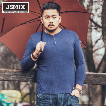 胖胖星球JSMIX大码男装纯色长袖T恤加肥加大秋装基本打底衫X2166
