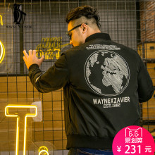 韦恩泽维尔潮牌大码男装秋装修身棒球服加肥加大码夹克外套3784