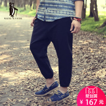 韦恩泽维尔 加肥加大 中国风麻料低裆九分裤子潮 #1565