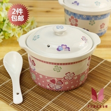【天天特价】家用双耳带盖陶瓷汤窝创意炖盅纯白大号容量饭汤碗