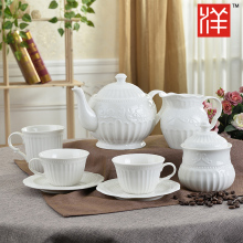 新品欧式宫廷浮雕骨瓷纯白咖啡套装高档下午茶大壶奶壶糖罐杯碟