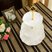 欧式陶瓷三层水果盘下午茶点心盘白色浪漫玫瑰浮雕花朵蛋糕架托盘