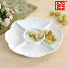 包邮浮雕陶瓷五格盘拼盘小食盘多格菜盘KTV果盘零食盘西餐盘