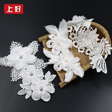 欧根纱补丁贴白色花朵立体刺绣diy布贴衣服贴装饰贴花蕾丝贴布绣
