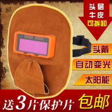牛皮电焊面罩头戴式自动变光焊帽眼镜焊接焊工面罩防护氩弧焊面罩