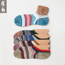 良朴春季船袜男士短袜纯棉民族风低帮袜子个性潮袜男士棉袜男袜