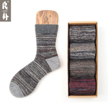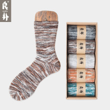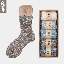 良朴男士纯棉袜子春季全棉男袜防臭中筒袜男毛线袜复古棉袜