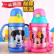 迪士尼儿童水杯宝宝吸管杯防摔幼儿园饮水杯水壶带手柄防漏水瓶夏