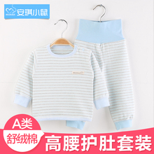 安琪小鼠 彩棉婴儿秋衣宝宝儿童内衣套装无骨高腰护肚套装秋冬季