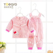 婴儿套装纯棉双层夹衣背带套长袖开档0-1岁春秋季新款女宝宝衣服