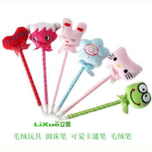 卡通动物动漫毛绒玩具礼品 文具圆珠笔 卡通缎带毛绒笔六一儿童节