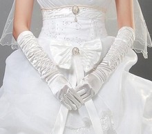 新娘婚纱手套冬季蕾丝缎面韩式白红色女冬天长款全指保暖结婚手套