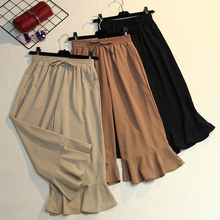 2017夏季新款时尚百搭荷叶边雪纺九分裤松紧腰系带蝴蝶结阔腿裤女