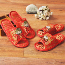 Tianying双喜结婚锦锻刺绣拖鞋喜庆中式婚庆拖鞋用品婚回礼新娘鞋