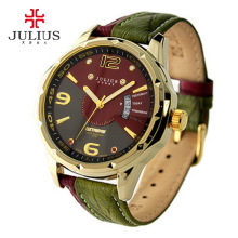 聚利时Julius韩国正品真皮带防水石英日历男学生韩版男士手表男表
