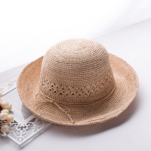 遮阳帽沙滩出游田园春夏秋女拉菲草帽子碎毛边串珠太阳防晒草帽