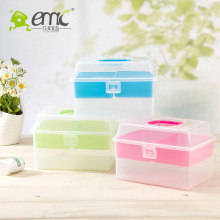 亿美家庭用手提透明双层小药箱塑料储物箱药品收纳箱整理箱医药箱