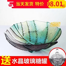 高档水晶玻璃果盘水蓝色水果盘大号葵花果盘果碗套装时尚创意礼品