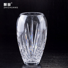 捷克进口水晶透明螺纹玻璃花瓶现代简约茶几摆件时尚插花家居花器