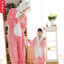 法兰绒儿童动物圆点KT连体睡衣卡通家居服亲子冬如厕