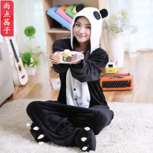 送爪子鞋卡通动物睡衣熊猫连体家居服法兰绒女生情侣亲子珊瑚动漫