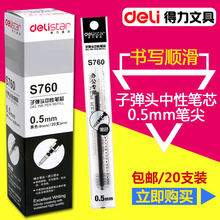 包邮得力黑色针管中性笔芯0.5mm 红色蓝色子弹头水笔碳素笔替芯