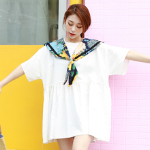 夏季海军风碎花领短袖连衣裙女夏 百搭宽松大码娃娃裙中长款裙子