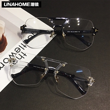 复古半框眼镜架男 平光镜女潮原宿金属大框可配防辐射近视眼镜框