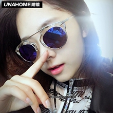2016款金属圆脸太阳镜女款反光眼镜男 复古大框潮流彩膜墨镜女潮