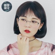 墨守文艺复古圆眼镜框女韩版学院风平光近视圆形金属细框眼镜架男