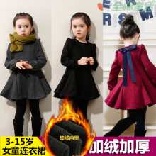 童装女童秋冬装2017新款韩版加绒打底裙子公主岁儿童长袖连衣裙潮