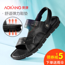 奥康男鞋 爸爸凉鞋男真皮中老年夏季防滑透气软底沙滩鞋皮凉拖鞋