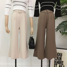 2017春装新款韩版七分阔腿裤女春夏季雪纺黑色直筒高腰西装九分裤